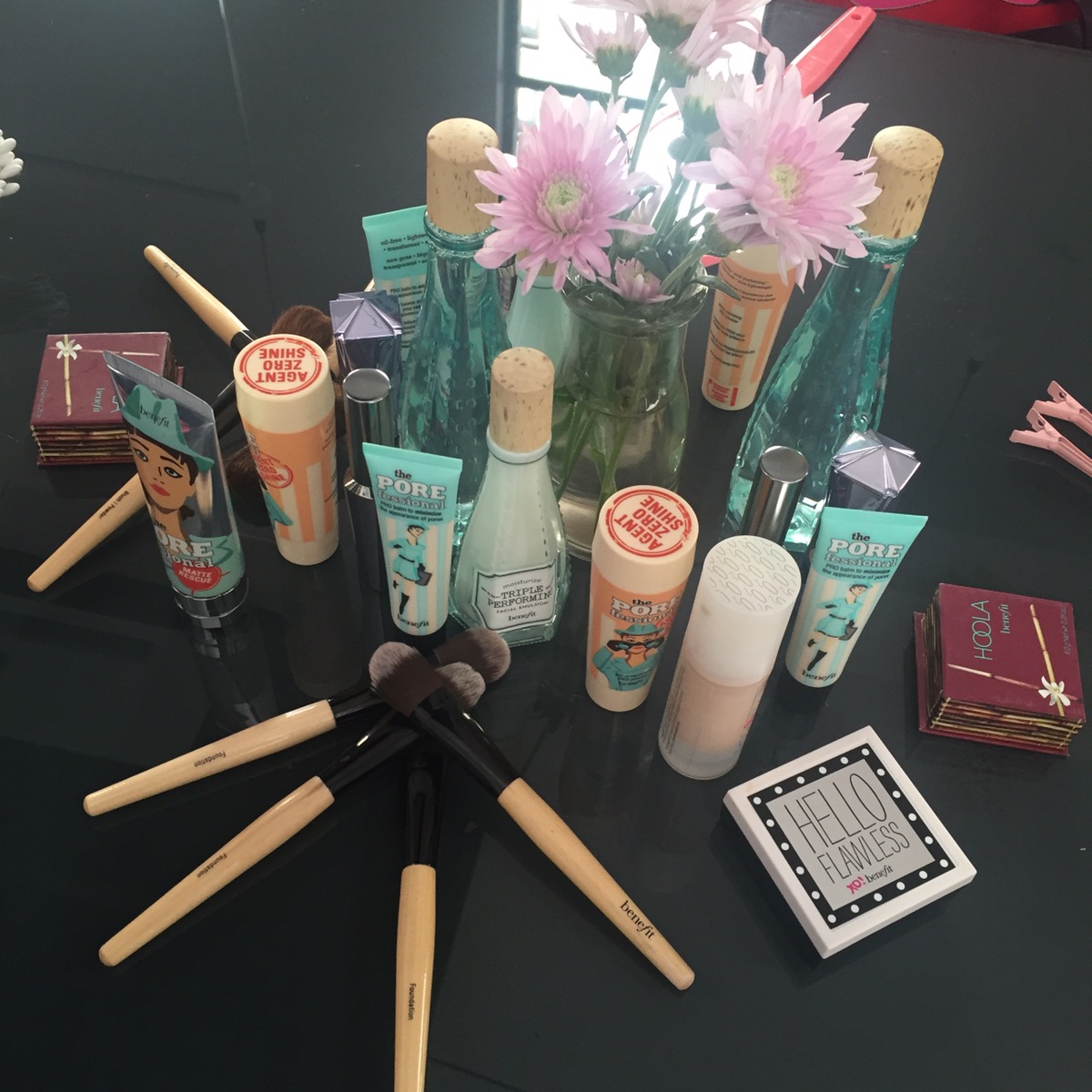 Located on the first floor with the unexpectedly sunny melbourne shining in, Bellabox had set up a gorgeous space with beautiful flowers, decor and…cupcakes! There were a whole bunch of Benefit products spread out on the table – both new (like the new POREfessional products) and the old favourites too! We were greeted by Sam from Bellabox, who introduced us to Luci who is a Benefit representative (who was super sweet!)